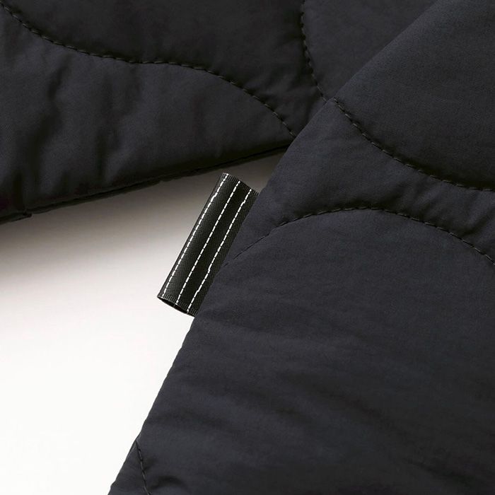オーバーサイズのインナーを着用してもストレスが無いようにデザインしたビッグサイズの中わた入り長袖プルオーバートップ。素材は薄手の高耐久撥水性と撥油性を変え備えた高機能ナイロンタスランタフタを使用。内側には膨らみのある軽量の中わたを入れ保温性を持たせています。