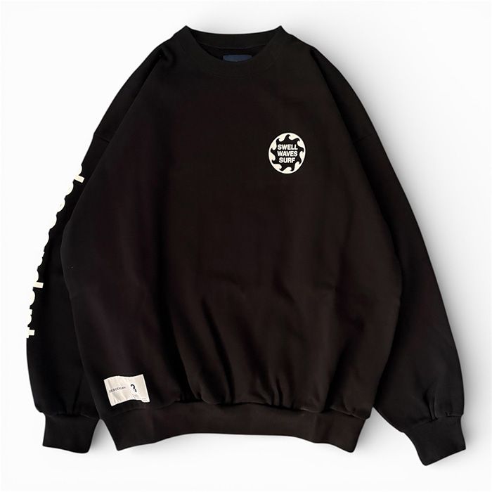 アメリカ産のオーガニックコットンを使用した日本製のオリジナルボディのクルーネックスウェット。前面と背面にVORTEXのグラフィック、右腕にDESCENDANTのロゴをプリント。