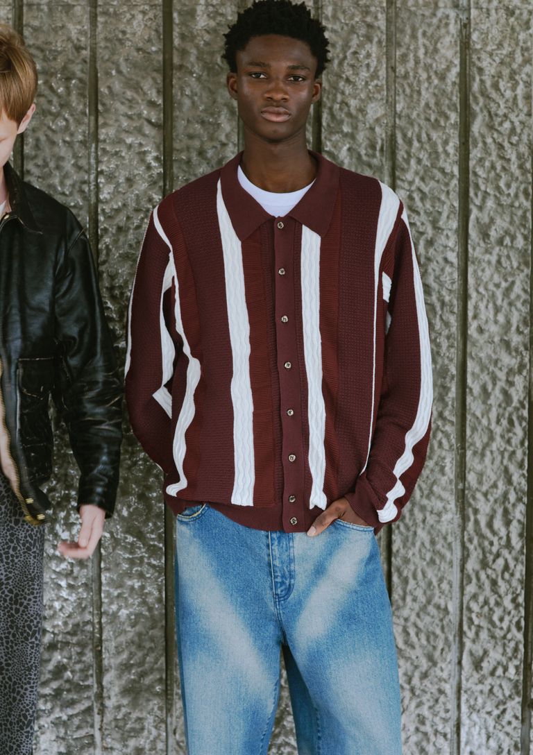 L/S STRIPE CARDIGAN / BURGUNDY / ストライプカーディガン / FS1956