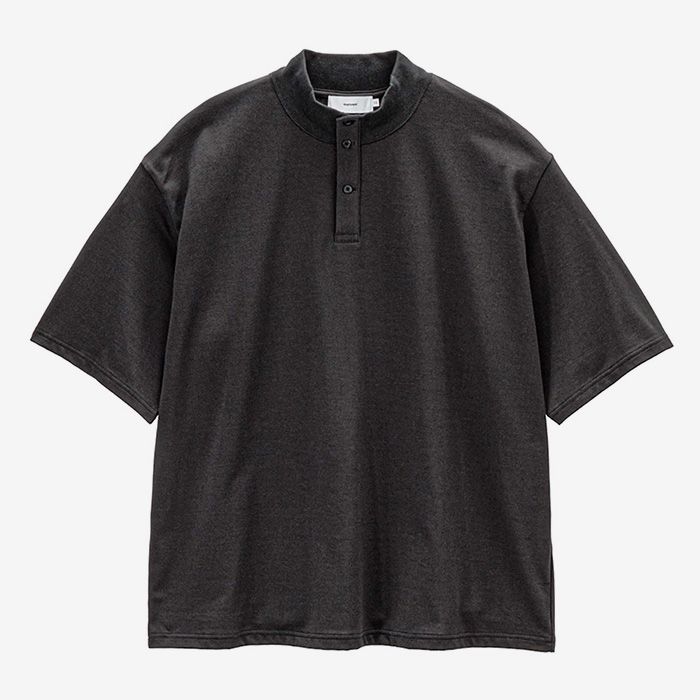 Tri Spun Cotton S/S Henley High Neck Tee / Charcoal